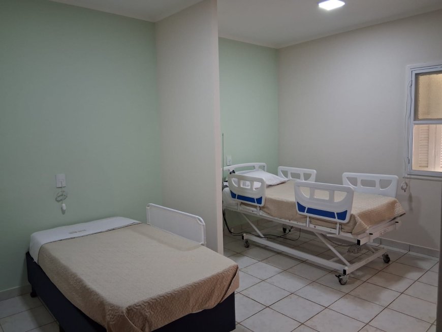 Apertando as mãos do médico e da atendente, um senhor se levanta da cadeira e oferece o braço a uma outra senhora, essa de mais idade. Ambos estavam ali para visitarem o local e conhecerem as instalações. Quartos amplos e arejados, jardins e ambientes externos floridos, horta, pomar, salão social, refeitório, espaços de convívio e de meditação e cultos ecumênicos, localizado bem abaixo de um pergolado de madeira que cobre poltronas confortáveis para os encontros, além de consultório médico e uma sala de atendimentos de urgência e emergência no próprio local: “Aqui são dois edifícios, sendo 1.100 metros quadrados de área construída, localizada em um bosque de 10 mil metros. Uma parte desta edificação é onde funcionou por muitos anos o Projeto Casa Dia, da prefeitura de Serra Negra-SP, onde hoje nós montamos nossos salão social e refeitório, e onde promovemos atividades coletivas, inclusive ações de fisioterapia, educação física e arteterapia. O empreendimento ainda dispõe de cozinha industrial equipada, lavanderia, horta, jardim, além de uma área de suporte, depósito de material de limpeza, e um elevador que dá acesso ao prédio de cima, onde as pessoas residem. Neste andar de cima, existe uma área de estar, destinada exclusivamente às famílias que vêm visitar os idosos, assegurando mais privacidade, e garantindo um local mais isolado para que juntos possam ter um momento de comunhão. A Casa di Matera ainda possui uma sala de atendimento de urgência e emergência, equipada com desfibrilador, cilindro de oxigênio e monitorização, utilizada para aqueles momentos em que, sabemos, lidaremos com questões mais graves, do ponto de vista de saúde. Ali é onde fazemos a medicação, com estrutura de geladeiras para medicamentos que precisam ser acondicionados. Atualmente, possuímos sete quartos na parte inferior do prédio, que podem receber 14 moradores, e assim que o elevador for instalado, teremos a possibilidade de ampliar o número para 14 apartamentos, somando 28 moradores. Estamos trabalhando para alcançar o número de dez ou doze pessoas para realizar esse novo investimento, e solicitar a liberação para os órgãos competentes, porque, hoje, temos a outorga para recebermos 14 pessoas moradoras. Vale destacar que os quartos são núcleos compartilhados, mas em havendo o desejo da família, eles podem ser privados também e o morador residir e dormir sozinho em um deles. Os quartos que temos à disposição atendem a duas pessoas, sendo um banheiro compartilhado entre elas. Fizemos recentemente uma série de reformas, trocando armários, instalando camas adequadas à funcionalidade da pessoa, podendo ser uma cama box, com proteção lateral, sempre, a fim de evitar quedas, e também camas automáticas e manuais hospitalares, para aqueles idosos que já têm um grau de disfuncionalidade 3, ou seja, completa, um idoso restrito ao leito. Essa pessoa fica numa cama hospitalar para conseguirmos elevar a cabeceira e as pernas e realizarmos os procedimentos de cuidados. Existem casos de idosos que possuem insuficiência cardíaca, por exemplo, e para evitar broncoaspiração e outros problemas, esses recursos dão suporte à equipe, formada por médico, enfermeiros, técnicos de enfermagem, fisioterapeuta, fonoaudióloga, terapeuta ocupacional, educador físico, além de outros profissionais que ainda irão se juntar a nós nessa empreitada”.